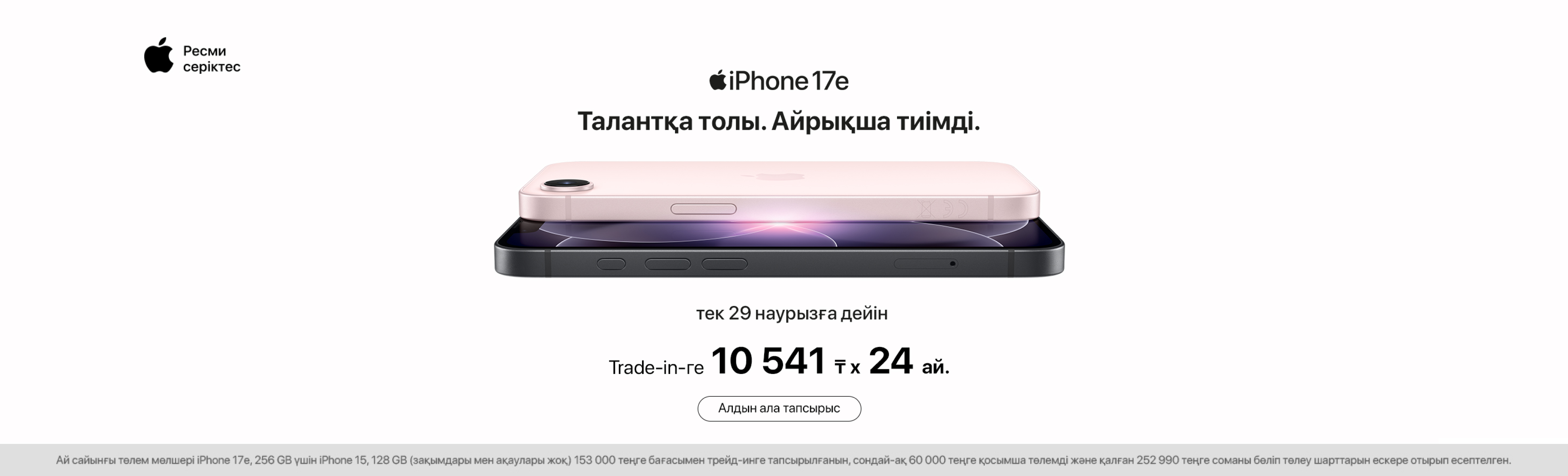 iPhone 17e — айына 10 541 ₸-ден басталады