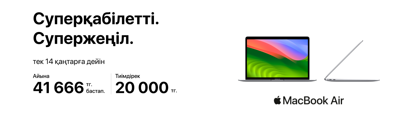 Біз жыл басынан бері жұмыс өнімділігін арттырып келеміз! Арнайы сен үшін Apple өнімдеріне 170 000 теңгеге дейін жеңілдік береміз. Technodom дүкендерінен MacBook Pro, MacBook Air мен iPad-ты жеңілдікпен ал да, жай отындай жылдамдық пен өнімді жұмыстың қызығын көр.