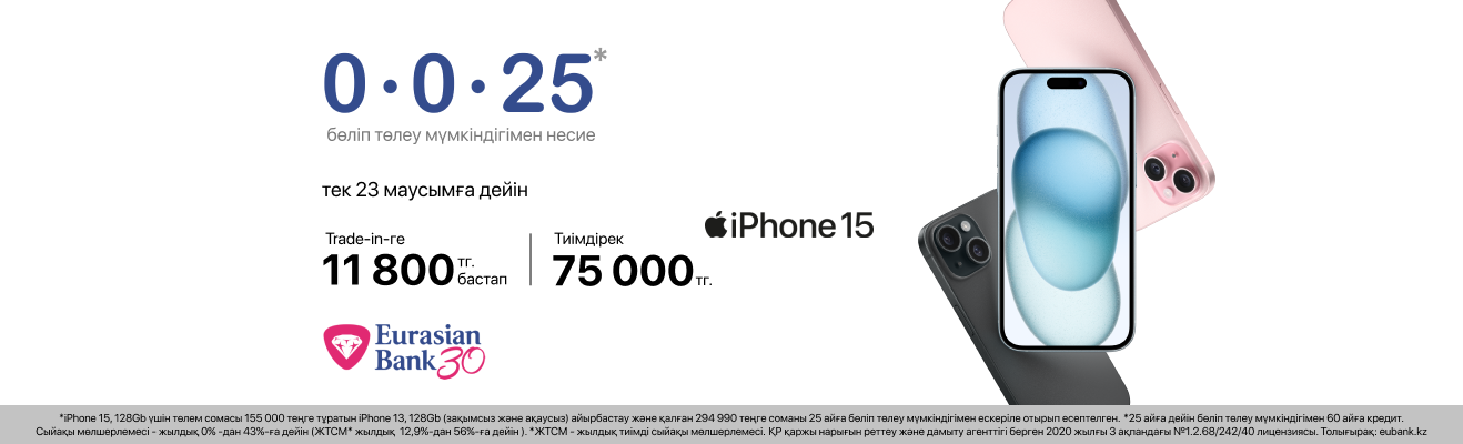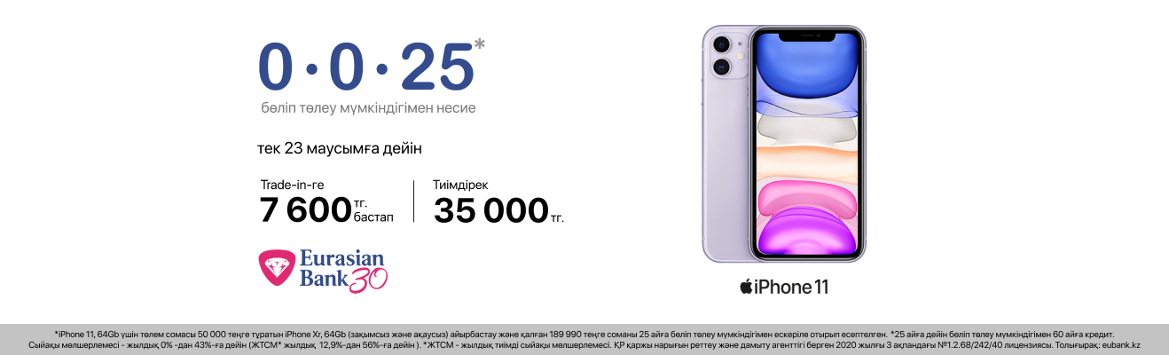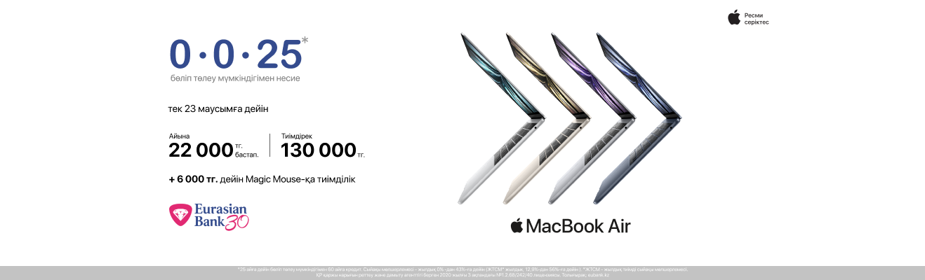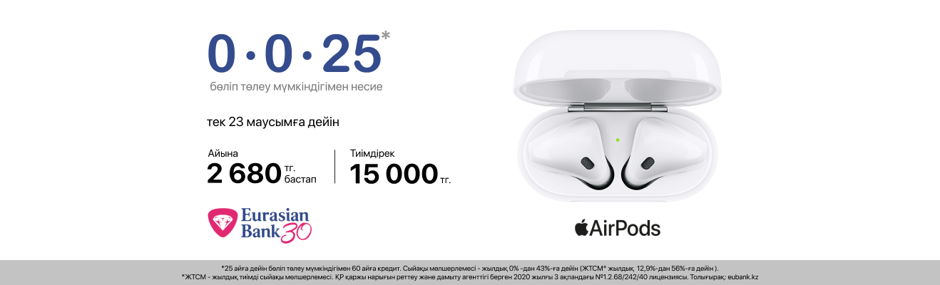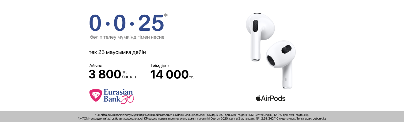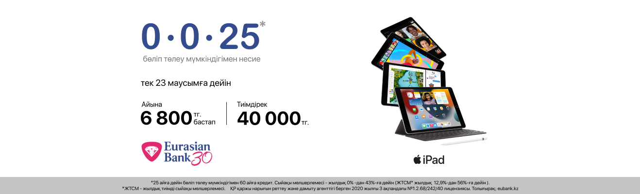 Apple-ден қалаған тауарыңды ал, Eurasian bank ұсынатын 0-0-25 бөліп төлеу опциясы бар несиені пайдалан!