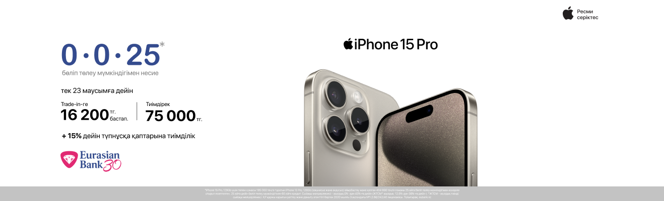 •Тrade-in-мен iPhone 15 Pro айына 16 200 теңгеден;