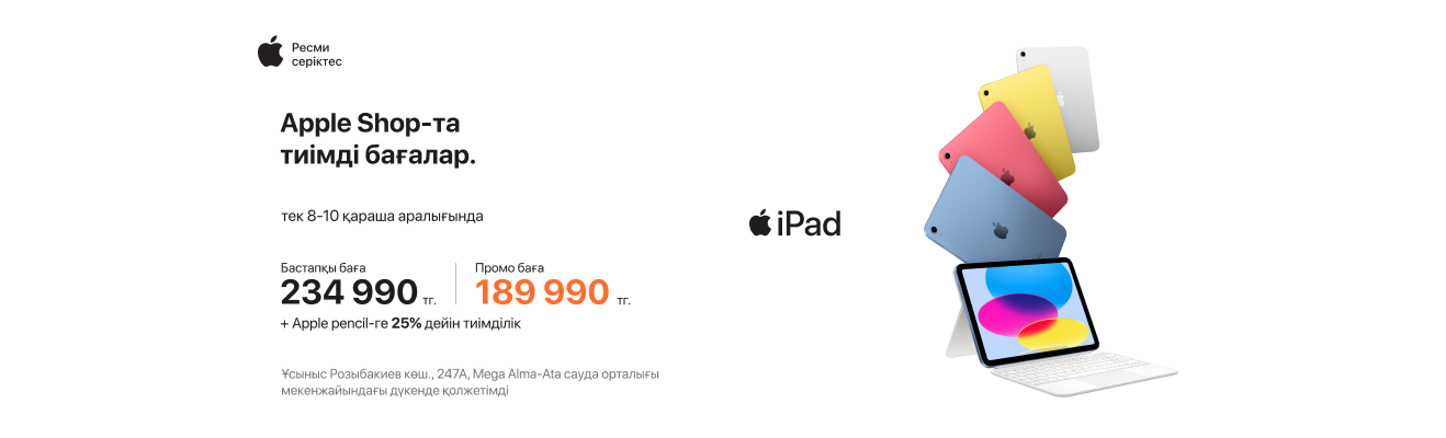 - iPad 10.9, 64GB WiFi — 234 990 тг орнына 189 990 тг, 45 000 тг үнемдейсің;