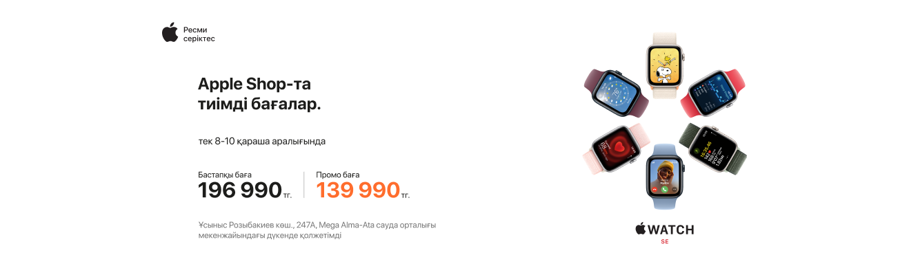 - Apple Watch Series 10, 42mm — 279 990 тг орнына 249 990 тг, 30 000 тг үнемдейсің;