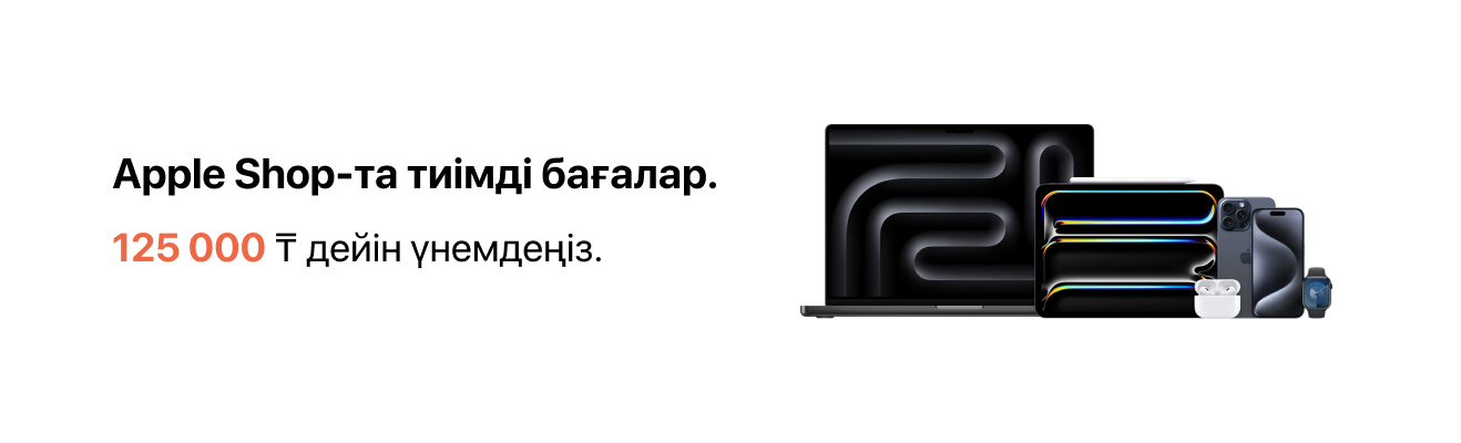 - iPad — 179 990 тг (199 990 тг орнына, үнем: 20 000 тг);