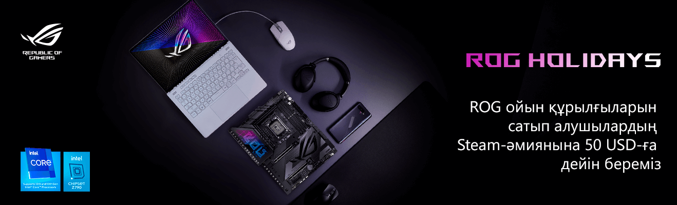 Осы қысты үш есе пайдалы өткіз. Акцияға қатысатын ROG ойын құрылғысын сатып алып, саудаңды тірке де, Steam-әмияныңа 50 USD ал және ROG Elite клиенттерге қамқорлық бағдарламасы бойынша балл жина. 1 қараша мен 31 желтоқсан аралығында ұсынылатын тиімді ұсыныстан құр қалма.