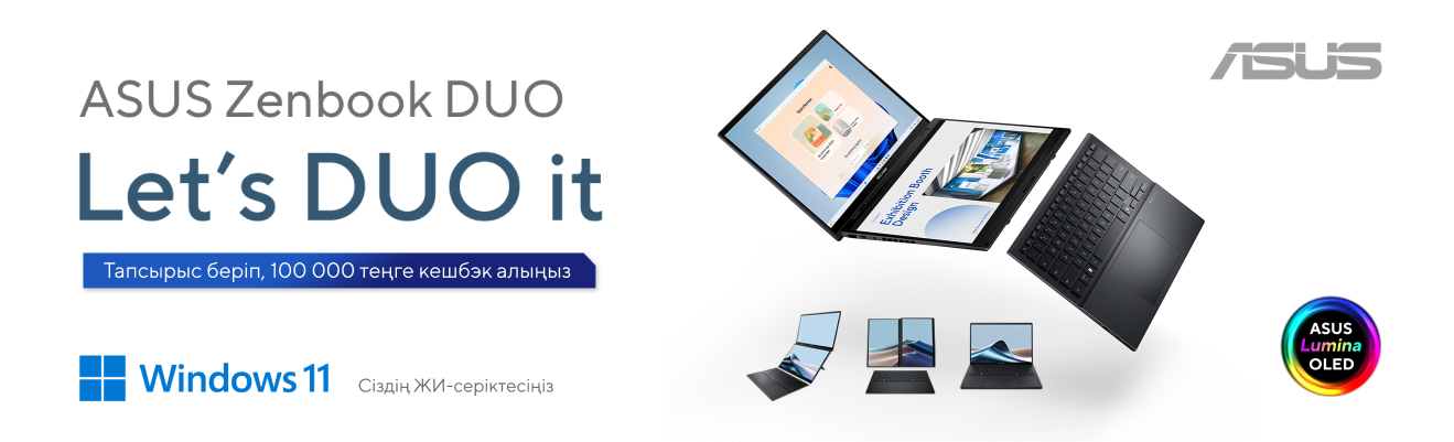 ASUS Zenbook Duo-ға тапсырыс беріп, 100 000 ₸ кешбэкке ие болыңыз!