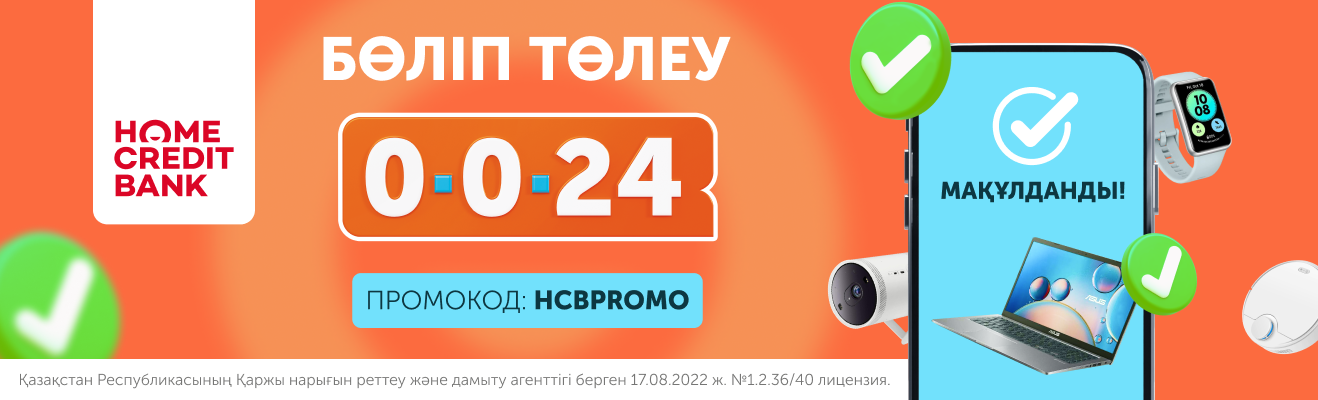 Home Credit Bank-тен 0-0-24 дейін бөліп төлеуге промокод