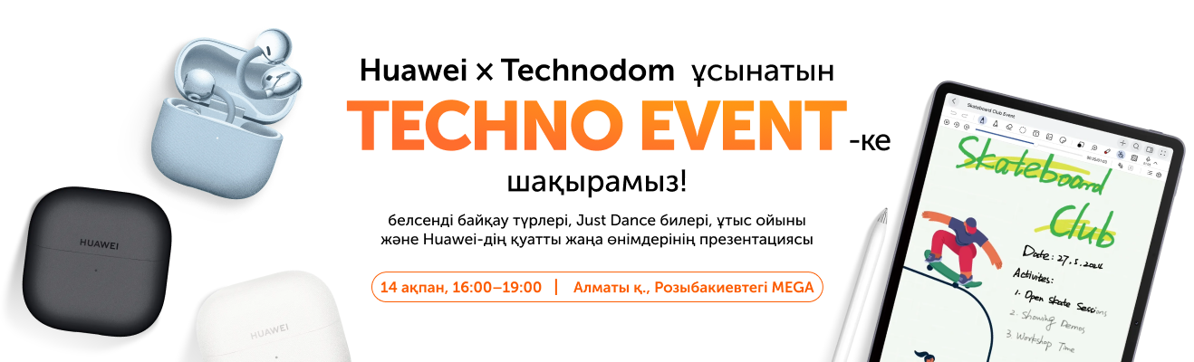 Сіздерді ақпан айындағы ең ауқымды технологиялық шараға шақырамыз! Уақытты ерекше көңіл күймен өткізіп, Huawei-дің қуатты жаңа өнімдерін сынап көріңіз де, сыйлық ұтып алу мүмкіндігіне ие болыңыз.