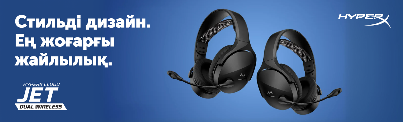 HyperX Cloud Jet Dual Wireless — ойынға, жұмысқа және күнделікті қарым-қатынасқа арналған сымсыз гарнитура.