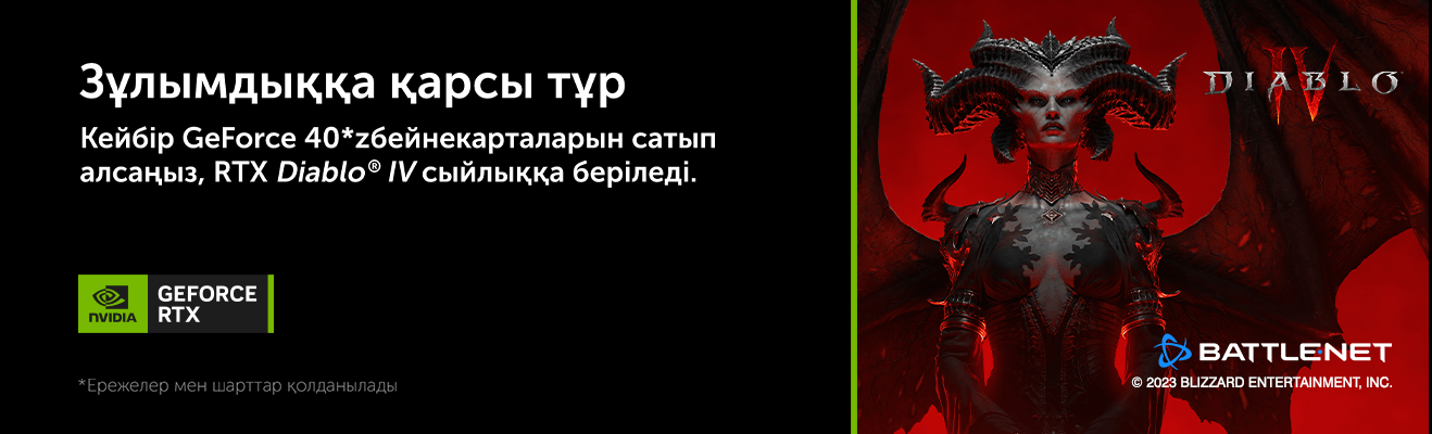 Зұлым күштерге қарсы ақтық шайқас! Акцияға қатысатын GeForce RTX 40 сериялы бейнекарталарды сатып ал да, Diablo® IV Standard Edition Game ойынын сыйлыққа ал. Шынайы геймплей мен керемет кескіннің қызығын көр.