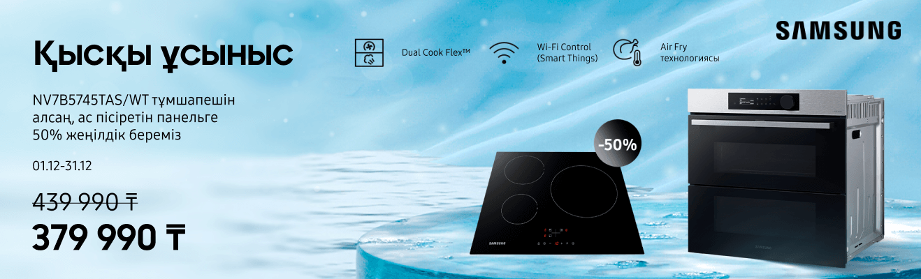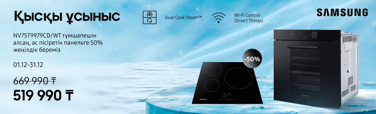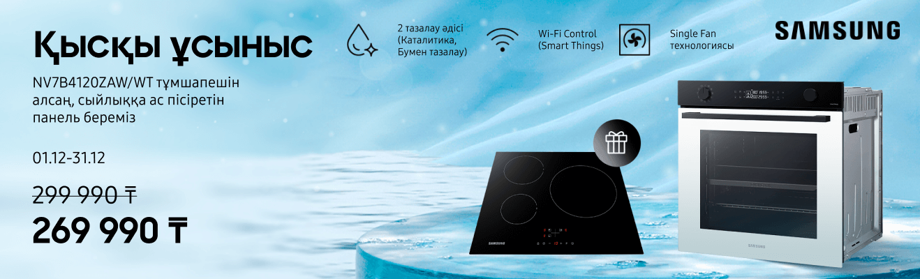 Қысты сүйікті қош иістерің аңқыған ас үймен қарсы ал. Біз сен үшін керемет ұсыныс дайындадық: акцияға қатысатын Samsung тұмшапешін сатып ал да, ас пісіретін панельге 50% жеңілдік ал. Саудаңды жеңілдетіп, 24 айға бөліп төлеу мүмкіндігін пайдалан.