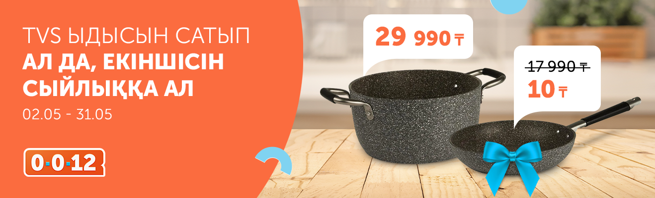 Technodom дүкендерінен акцияға қатысатын TVS ыдысын сатып ал да, екіншісін сыйлыққа ал. 12 айға дейін бөліп төлеу мүмкіндігін пайдаланып, пайдаңды екі еселе!