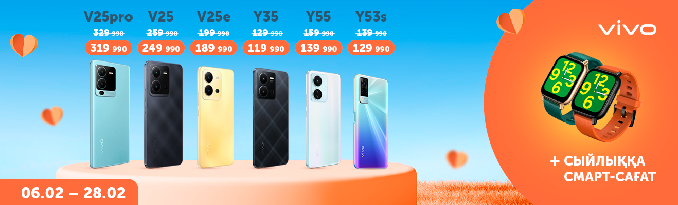 Өміріңе жарқын түстер мен тиімді сауданы енгіз! Technodom дүкендерінен Vivo V25 Pro, V25, V25e, Y35, Y55, Y53s смартфондарын сатып ал да, смарт-сағаттарды сыйлыққа ал. 6-28 ақпан аралығында ұтымды ұсынысты жіберіп алма.