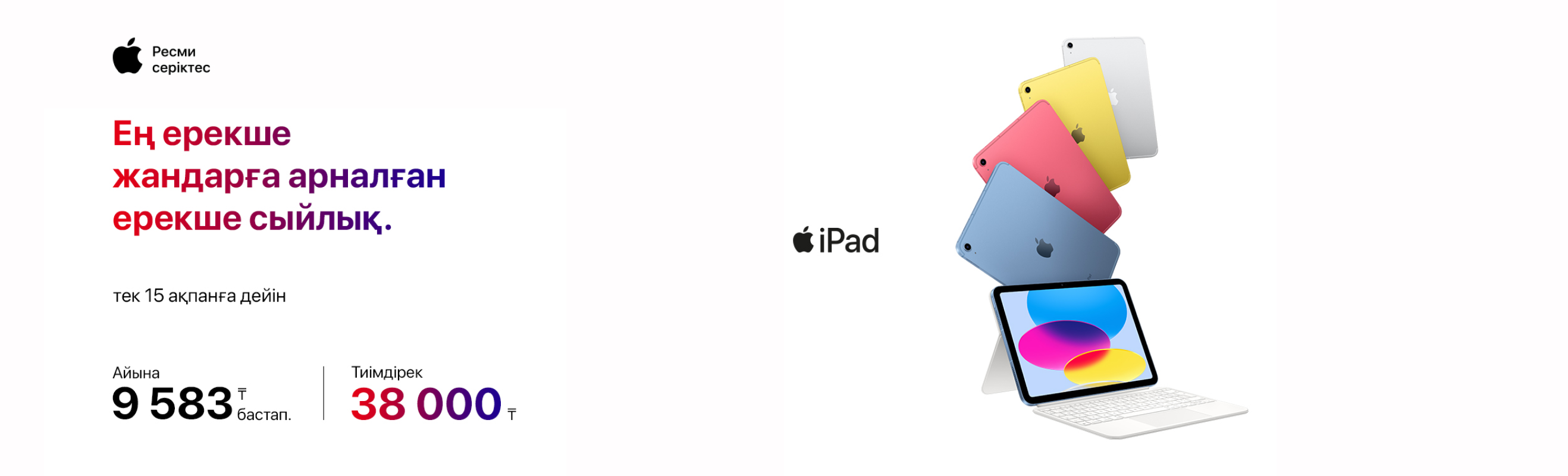 Ғашықтар күніне орай ресми Apple құрылғыларына арнайы ұсынысымыз бар.Тек 15 ақпанға дейінгі уақыт — жақын адамыңызды қуантатын немесе немесе өзіңізге сыйлық алатын кез.