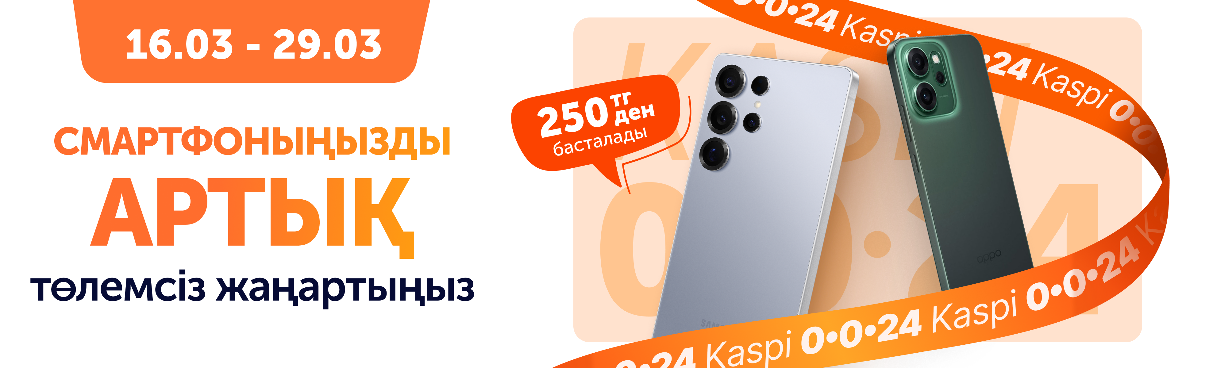 16 наурыздан 29 наурызға дейін Technodom дүкендерінде смартфондарға Kaspi 0-0-24 ыңғайлы бөліп төлеу жүйесі бар ыстық жеңілдіктер ұсынылады.