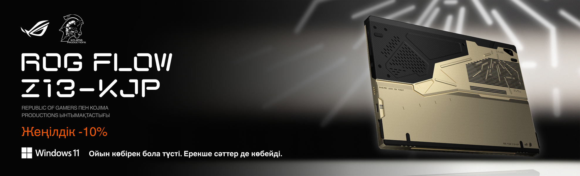 ROG Flow Z13-KJP көмегімен жаңа деңгейдегі өнімділікке баға бере кетіңіз — бұл құрылғы Kojima Productions-пен коллаборацияда жасалған.