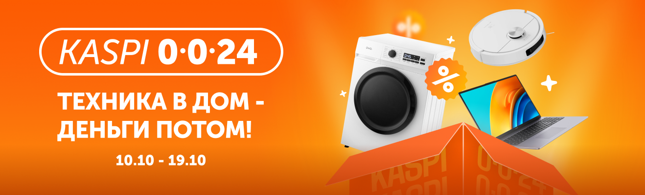 С 10 по 19 октября в Technodom действует суперпредложение: Kaspi рассрочка 0-0-24 на всю бытовую технику и электронику!