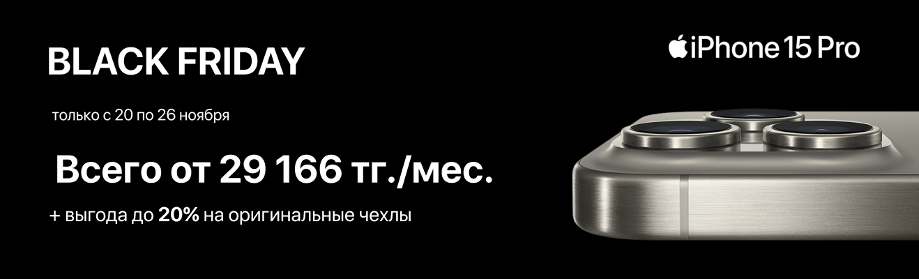 - Выгоду до 35 000 тенге на iPhone 11, iPhone 12, iPhone 13, iPhone 14, iPhone 15 и iPhone 15 Pro с 20 по 26 ноября;