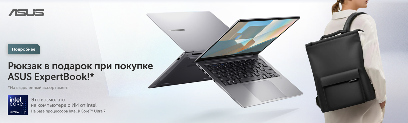 При покупке ноутбука ASUS ExpertBook вы получаете фирменный рюкзак ASUS в подарок. (будет выделено рамкой оранжевой)
