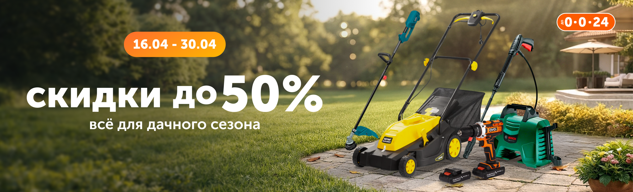 Только с 16 по 30 апреля Вы можете приобрести садовую технику и инструменты по сниженным ценам. Обновите оборудование для участка и создайте комфортное пространство для отдыха. Специальные предложения помогут Вам сэкономить без компромиссов в качестве.