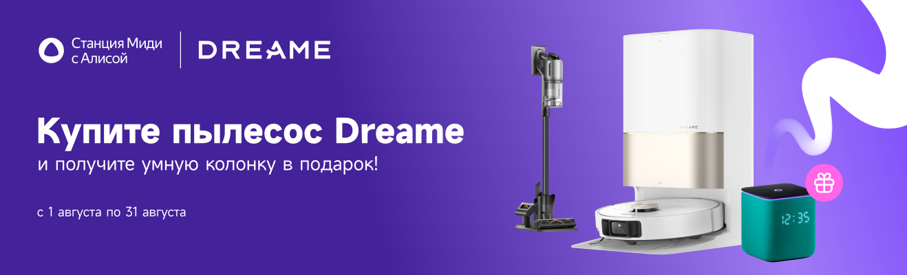 Покупай пылесос Dreame и получай умную колонку Яндекс-станцию Миди в подарок.