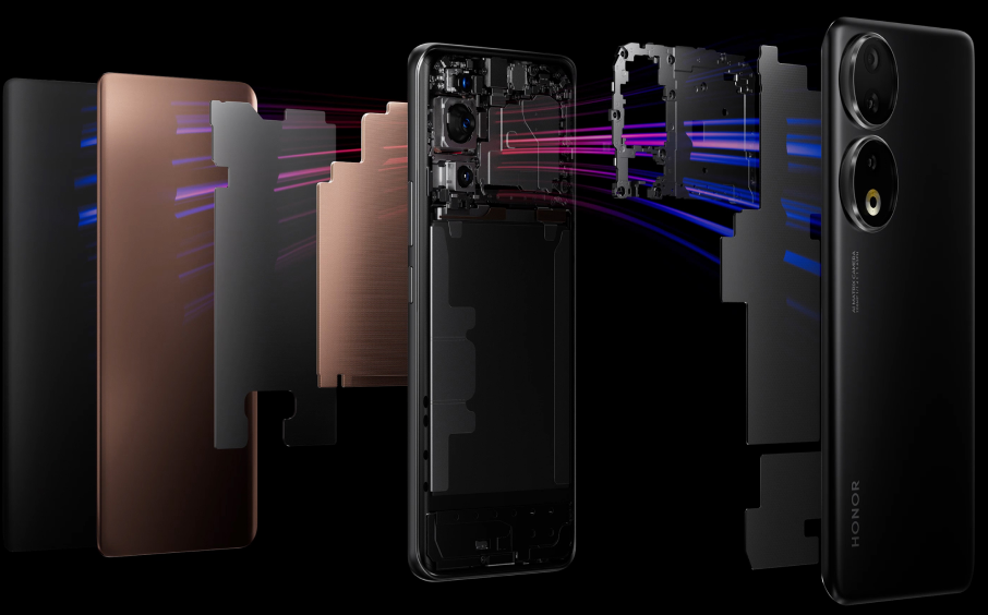 В HONOR 90 установлена биомиметическая испарительная камера увеличенного размера, теплопроводящая графитовая пластина 3-го поколения и система терморегулирования с технологиями искусственного интеллекта.