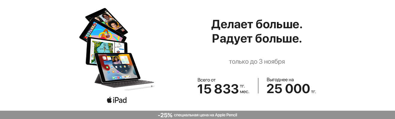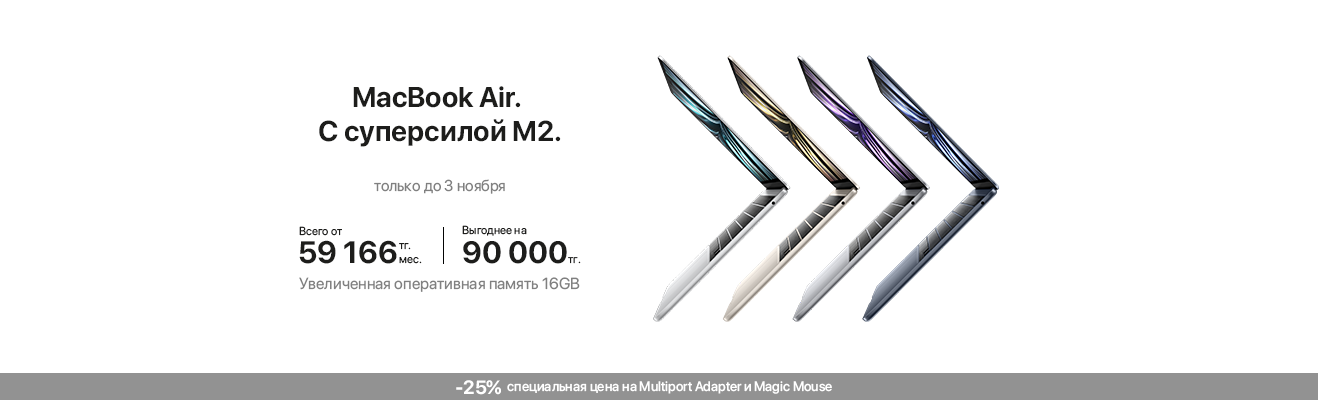 Облегчай себе рабочие процессы вместе с Apple. Купи MacBook Air M2 и iPad 9th Gen по супер промо-ценам в наших магазинах! Испытай энергоэффективность и скорость нового чипа М2, рисуй, редактируй и твори на планшете, забирая компактные устройства вместе с собой куда угодно.