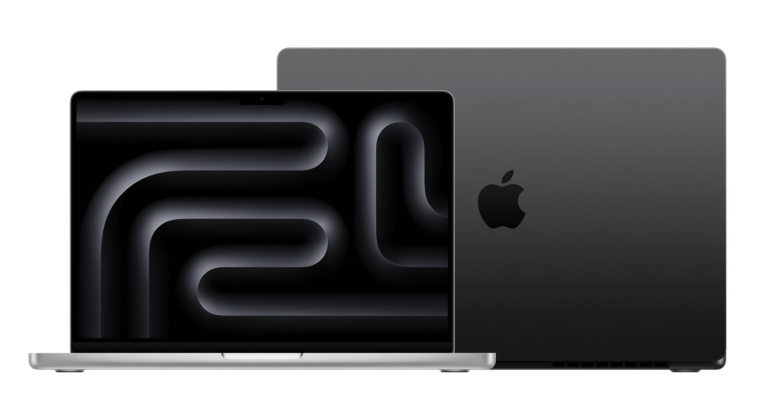 3Дисплей MacBook Pro 14 дюймов представляет собой прямоугольник с закруглёнными верхними углами.