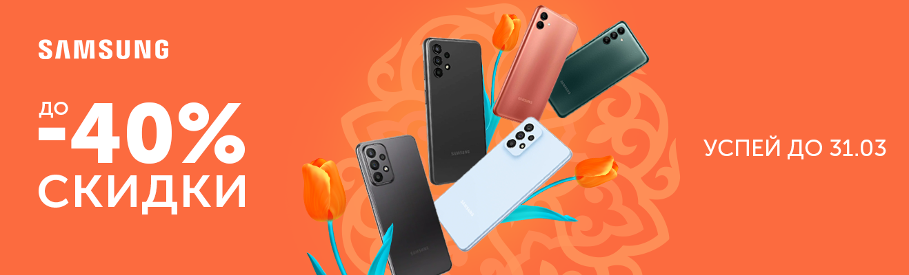 Празднуем Наурыз с выгодными ценами на смартфоны! Купи смартфоны Samsung Galaxy, участвующие в акции, по промо-ценам с 15 по 31 марта и наслаждайся весенними обновлениями.