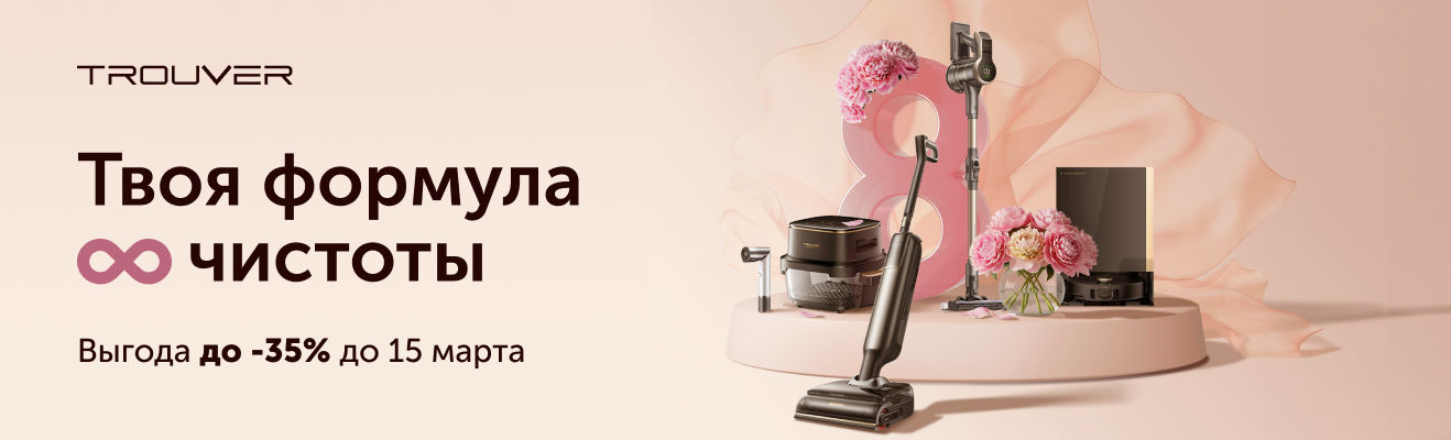 Встречайте весну технологично! Technodom и Trouver объявляют праздничную акцию к 8 Марта. Освободите время для отдыха, доверив уборку интеллектуальным помощникам.