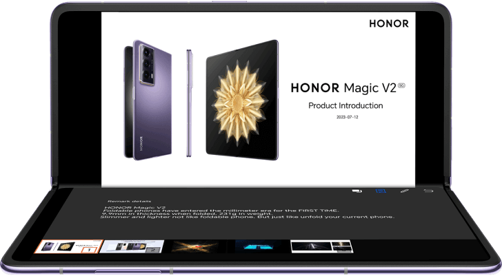 HONOR Magic V2 — складной смартфон с гибким экраном. При использовании не надавливайте на экран острыми предметами и следите, чтобы посторонние предметы не попадали в смартфон, когда вы складываете его. На внутреннем экране смартфона закреплена защитная пленка. Не снимайте и не пытайтесь заменить ее самостоятельно, чтобы не нарушить условия гарантийного обслуживания и не повредить устройство. Чтобы заменить защитную пленку, обратитесь в службу поддержки или сервисный центр HONOR. Смартфон содержит сложные компоненты, поэтому избегайте попадания в него жидкостей, песка и т. д. В смартфоне используются магниты, не держите его вблизи магнитных карт, имплантированных медицинских приборов и других устройств, на работу которых может повлиять магнитное поле. Если вы пользуетесь имплантированными медицинскими приборами, перед использованием смартфона проконсультируйтесь с врачом.
