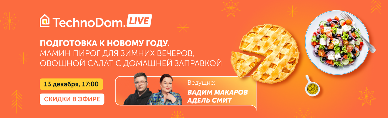 Ждем тебя на кулинарном прямом эфире в приложении Technodom. Погрузимся в атмосферу подготовки к Новому году и научимся готовить уютные блюда для зимних вечеров - мамин пирог и овощной салат с домашней заправкой. Вся магия создается в полном комфорте с мощной и универсальной кухонной машиной Moulinex Masterchef Gourmet QA51AD10. Обучимся готовить классические домашние рецепты и превратим их в настоящий шедевр. Не забывай, что в день эфира будут действовать специальные скидки на товары. Готовься к празднику вместе с Technodom.