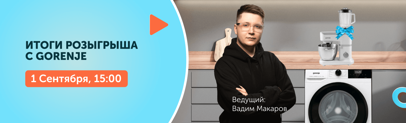 Приглашаем на наш специальный прямой эфир, где мы объявим итоги розыгрыша среди покупателей стиральных машин Gorenje.