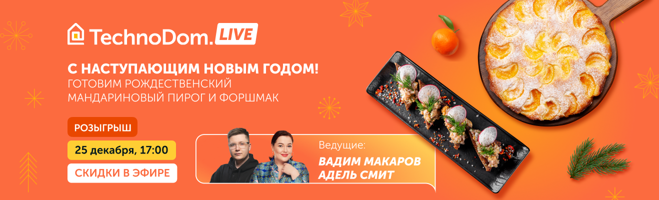 Скоро самый сказочный и волшебный праздник - Новый год! Давай встретим его с вкусом. В эфире готовим рождественский мандариновый пирог и неповторимый форшмак с помощью кухонной машины Moulinex Masterchef Gourmet QA51AD1. Но это еще не все! В эфире тебя ждут скидки на товары и розыгрыш. Запиши дату и время: 25 декабря, 17:00. Ждем тебя в приложении Technodom! Будем вместе готовиться к встрече Нового года!