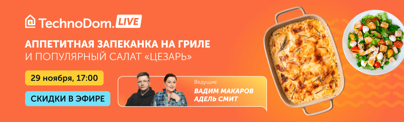 Встретимся 29 ноября в 17.00 в приложении Technodom на кулинарном прямом эфире. Мы приготовим вместе аппетитную запеканку на умном электрогриле Tefal Optigrill+ XL GC-724D12 и популярный салат «Цезарь». Все секреты и хитрости приготовления от Адель ждут тебя! Научимся использовать наш гаджет на все сто процентов, чтобы пользование было удобным и забавным.