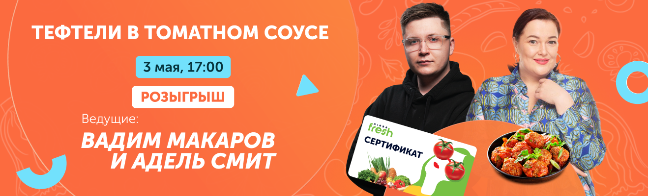Новая неделя – новый рецепт. Не знаешь, что сегодня приготовить на ужин? Вдохновляйся с Адель Смит в прямом эфире и узнай рецепт тефтелей в томатном соусе. По традиции, тебя ждёт розыгрыш среди зрителей: сертификат на 10 000 тенге от Airba Fresh!