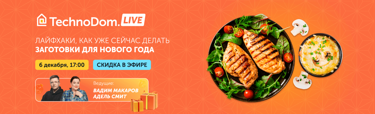 Приглашаем тебя 6 декабря в 17.00 в приложение Technodom на кулинарный прямой эфир. Готовиться к Новому году уже сейчас - это реально! Вместе мы узнаем самые интересные лайфхаки для подготовки к главному празднику года. Обучимся использовать все возможности умного электрогрила Tefal Optigrill+ XL GC-724D12, чтобы сделать торжество ещё проще и вкуснее. В день эфира на наши товары будут действовать специальные скидки. До встречи в лайве.