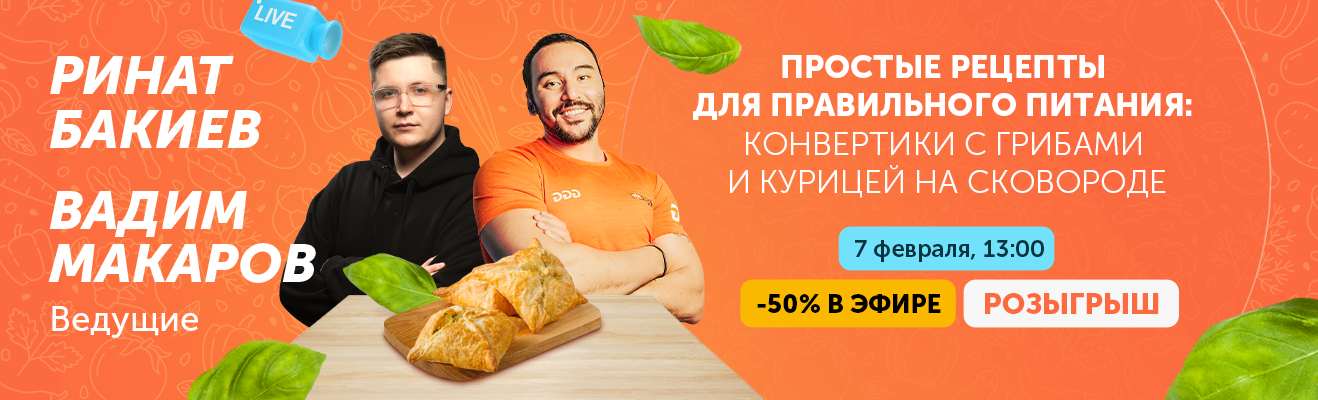 Питаться правильно – легко! Научим новому, здоровому и обязательно вкусному рецепту в прямом эфире с фитнес-тренером Ринатом Бакиевым. Подключайся, получи скидки до 50% на сковородки Polaris и участвуй в розыгрыше сковороды Polaris PRO collection среди зрителей.