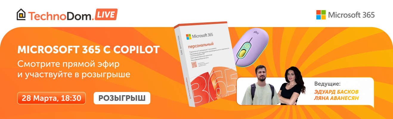 28 марта в 18:30 — Прямой эфир в Instagram @technodomkz: "Microsoft 365 с Copilot"