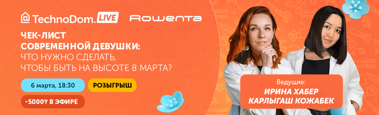 Но и это еще не все: подарим всем зрителям скидку 5000 тенге на бьюти-гаджеты Rowenta Karl Lagerfeld и проведем розыгрыш классного памятного приза.