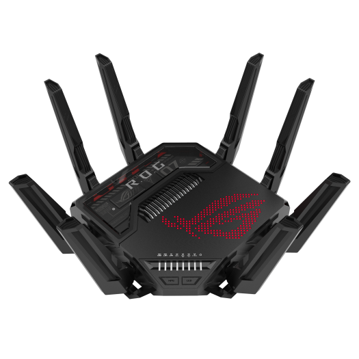 Маршрутизатор ROG Rapture GT-BE98 от ASUS оснащён восемью антеннами и поддерживает Wi-Fi 7, включая канал 320 МГц в диапазоне 6 ГГц. Это обеспечивает скорость передачи данных до 11,5 Гбит/с, который можно увеличить до 25 Гбит/с использовании модуляции 4K QAM.