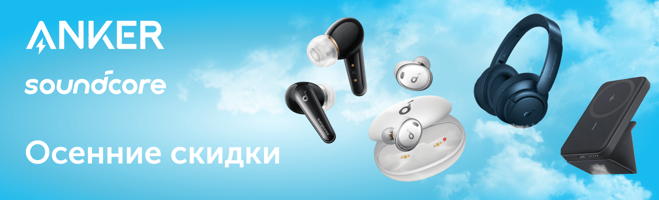 Забудь о низком заряде и наслаждайся музыкой без ограничений! Покупай внешние аккумуляторы от Anker и наушники SoundCore, участвующие в акции, по сентябрьский скидкам, а также в рассрочку на 15 месяцев для своего удобства.