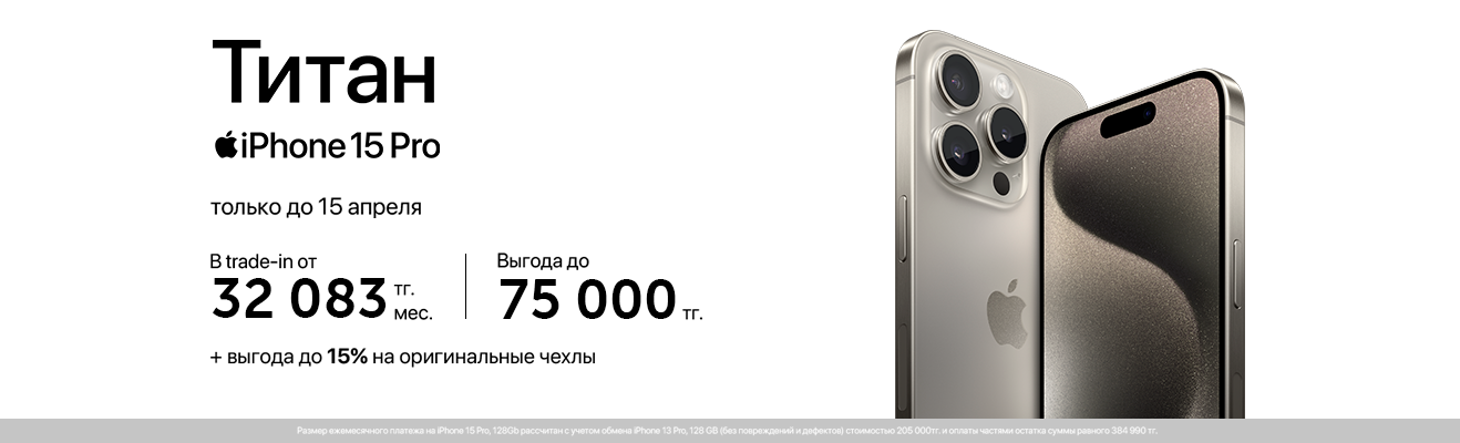 • iPhone 15 Pro 256 GB всего от 32 083 тг в месяц по Trade-in;