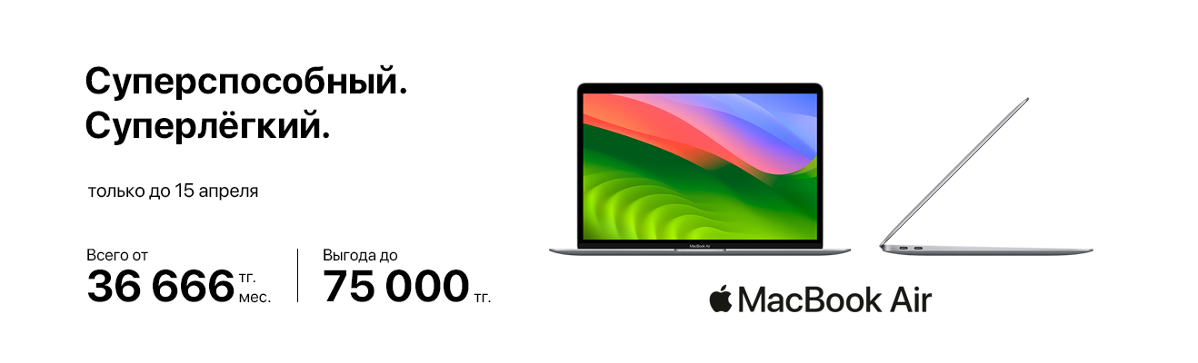 • Macbook Air M1 всего от 36 666 тг в месяц;