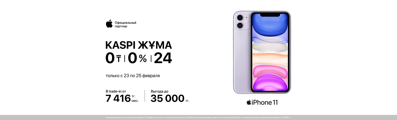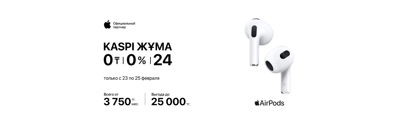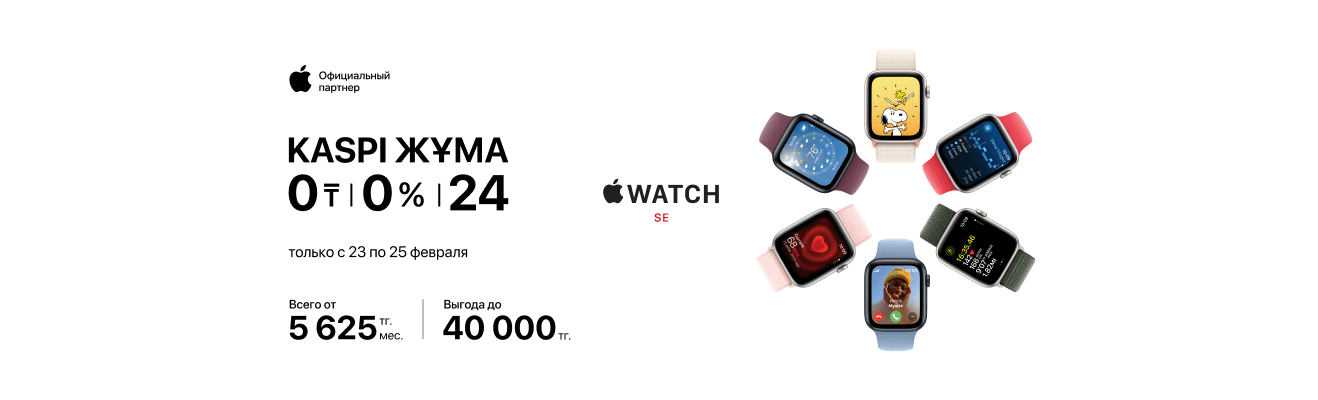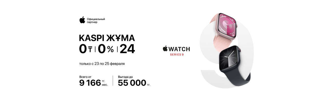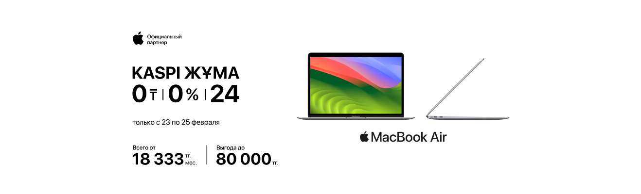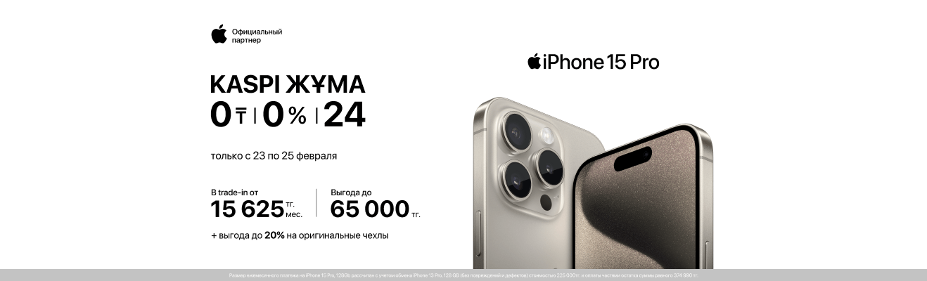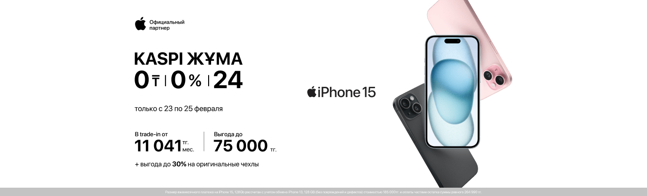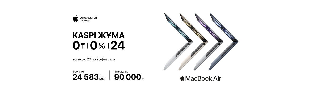 А с 23 по 25 февраля воспользуйся выгодной рассрочкой до 24 месяцев от Kaspi. Не упусти шанс обновить свой гаджетный арсенал уже сегодня!