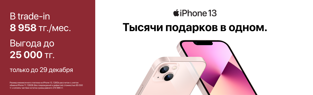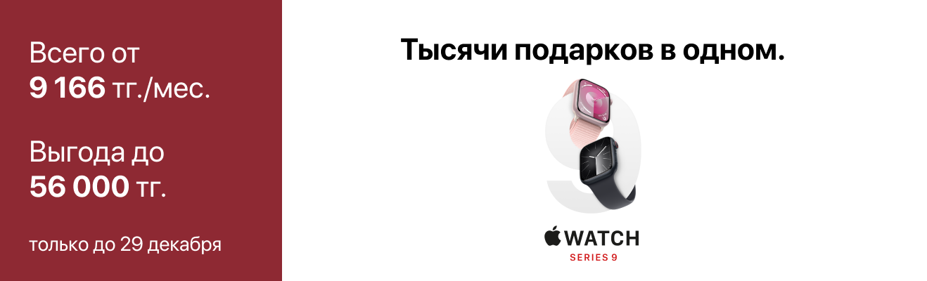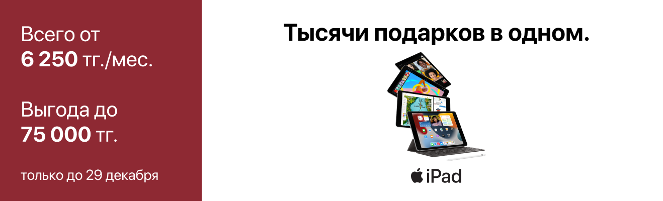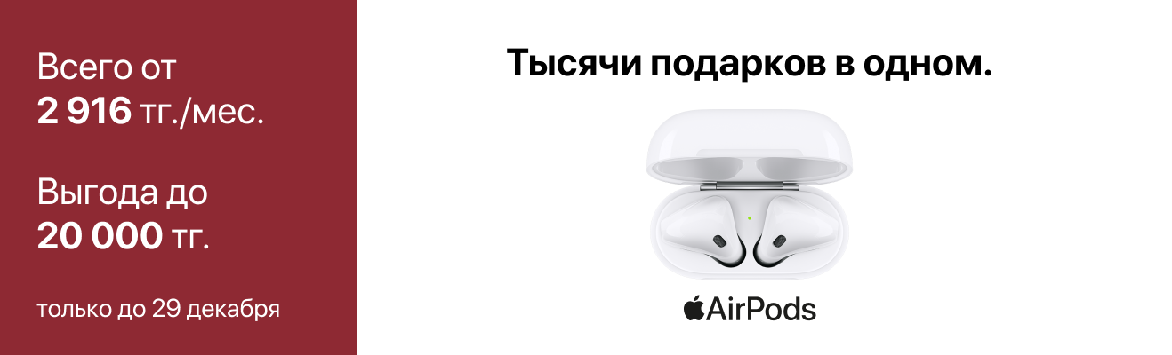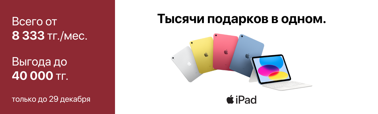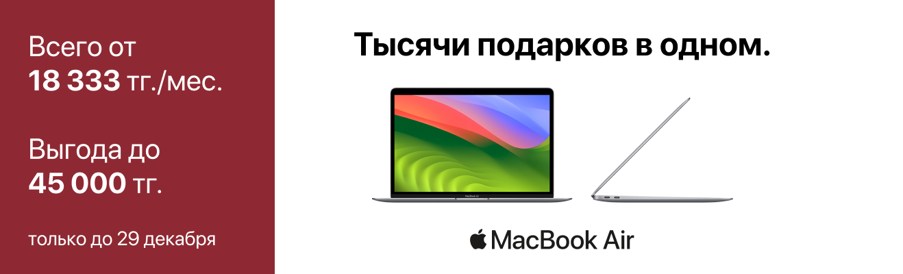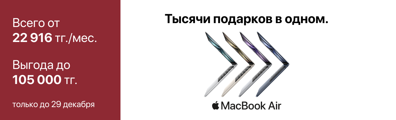 Приобретайте технику Apple с выгодой до 105 000 тг. Подготовьтесь к Новому году с умом и подарите своим родным эмоции, которые останутся с ними надолго.