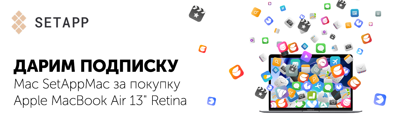 При покупке МасBook Air 2019 или 2020 года, вы получаете в подарок трехмесячную подписку Setapp.