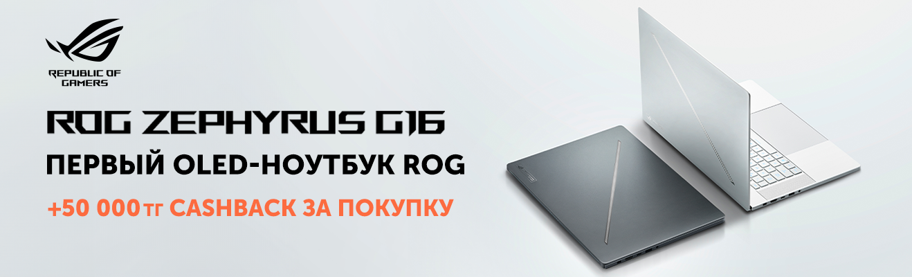 Тонкий, мощный, стильный – идеальный спутник для твоих игровых подвигов. С 4 по 10 марта купи новинку ASUS в топовой конфигурации ROG Zephyrus G16 и получи кэшбек 50 000 тг.