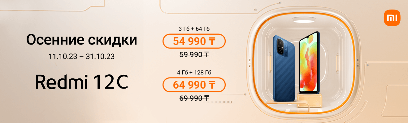 Золотой сезон дарит скидки на смартфон, который сочетает в себе мощный процессор, яркий экран, чёткую камеру и стильный дизайн. Только с 11 по 31 октября успей купить Redmi 12C 64 Гб за 54 990 тенге вместо 59 990 тенге, а также Redmi 12C 128 Гб за 64 990 тенге вместо 69 990 тенге.