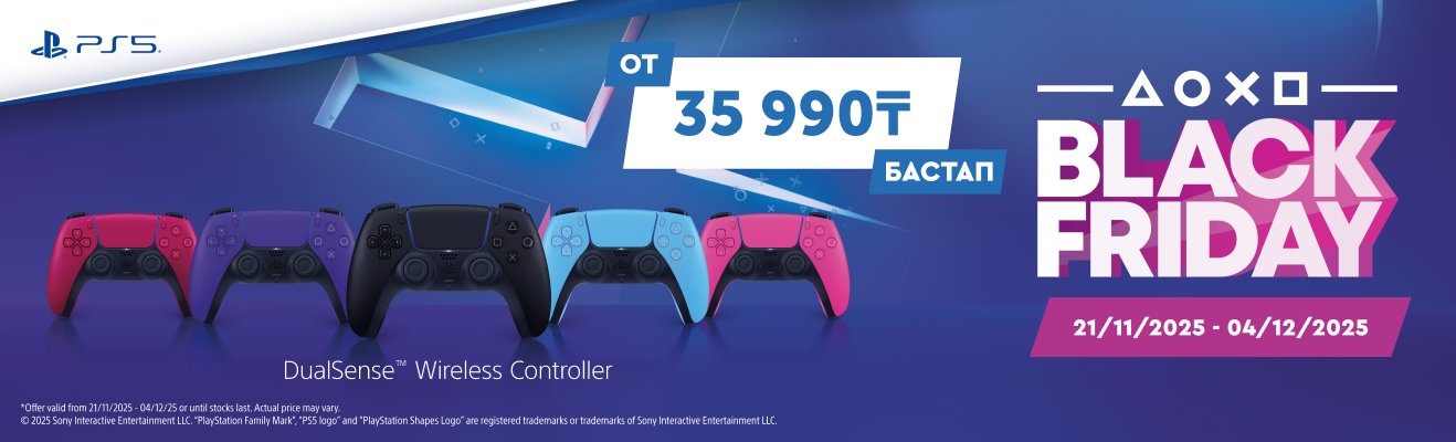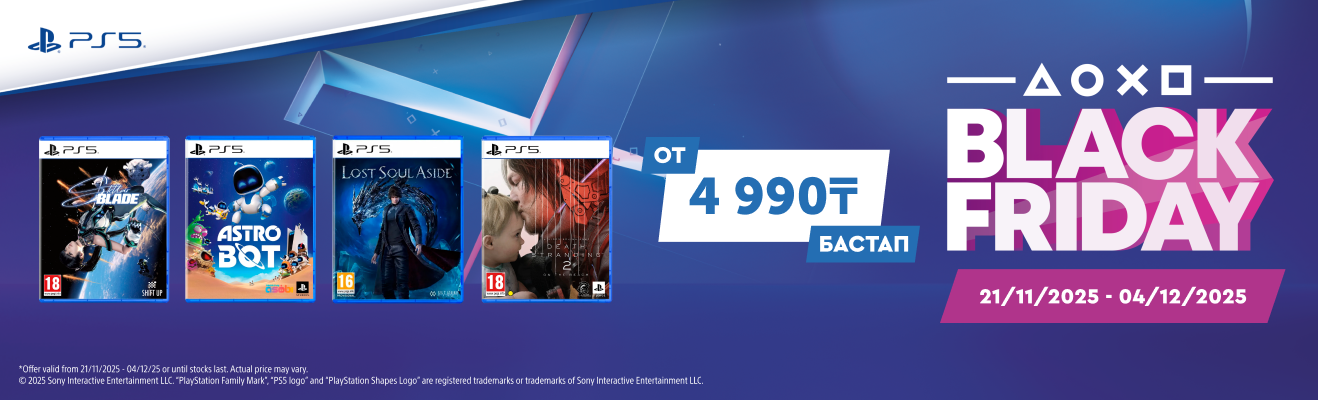 Вы можете приобрести беспроводные геймпады DualSense по специальной цене от 35 990 ₸, а популярные игры — от 4 990 ₸.