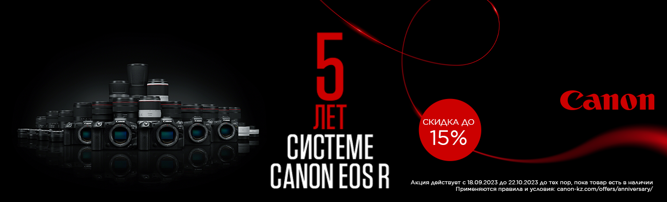 Отпразднуй 5-летний юбилей системы EOS R! Покупай фотоаппараты, видеокамеры, объективы и экстендеры Canon, участвующие в акции, со скидкой 15%. Снимай снимки нового уровня благодаря революционной технологии автофокусировки и невероятному ассортименту объективов RF.